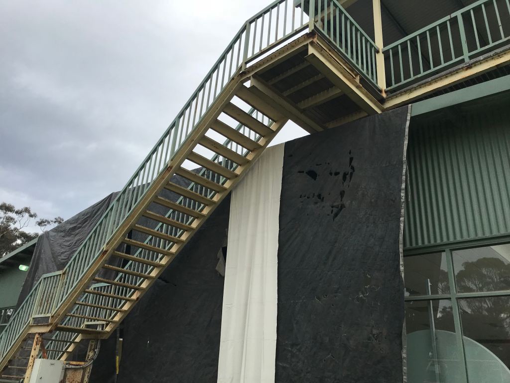 Avoca Turf Club Complete blast of stair case and hand railing. Undercoat in epoxy primer and top coat in polyurethane 2pac with nonslip applied to treads Share this: Click to share on X (Opens in new window) X Click to share on Facebook (Opens in new window) Facebook Like Loading...