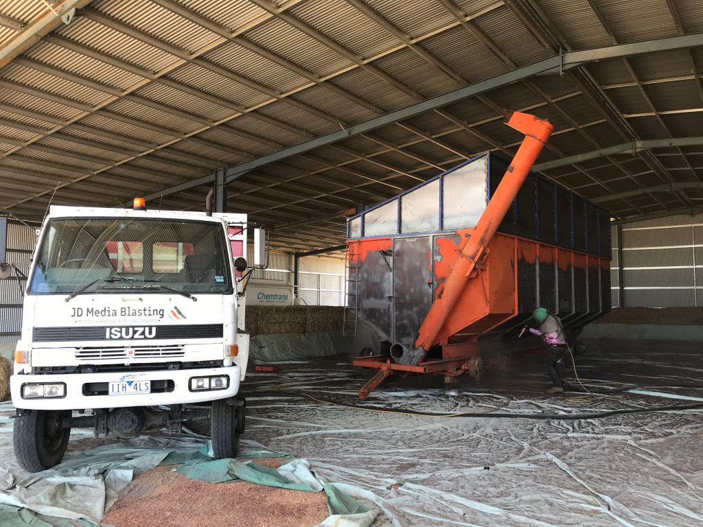 Dunstan field bin had some modifications completed before we completely blasted, primed and painted on site at the farm.